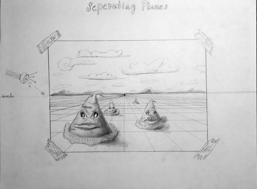 One Point Perspective. Graphite. 18×24. 2016. Two Point Perspective. Graphite. 18×24. 2016. Overlapping Planes. Graphite. 18×24. 2016. Separating Planes. Graphite. 18×24. 2016.